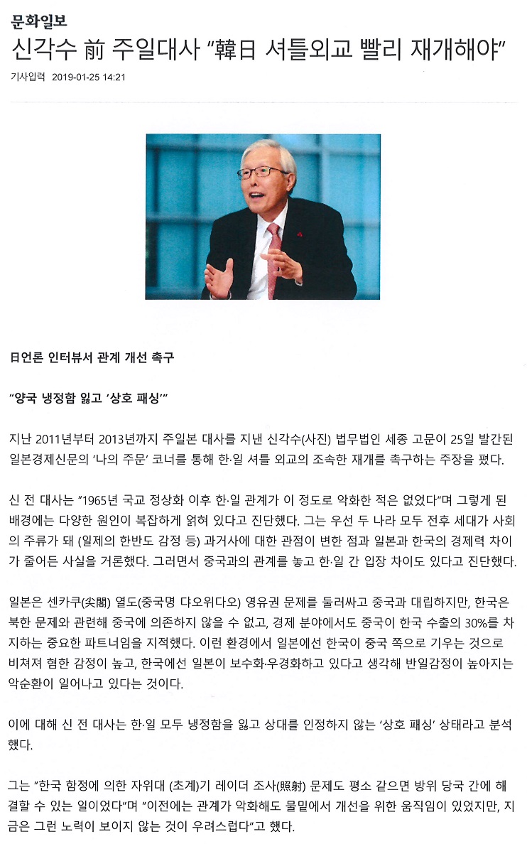 전문성과 오랜 경험을 겸비한 각계 전문가들의 한·일 양국 간 건전한 여론조성과 현실적 대안 마련을 위한,