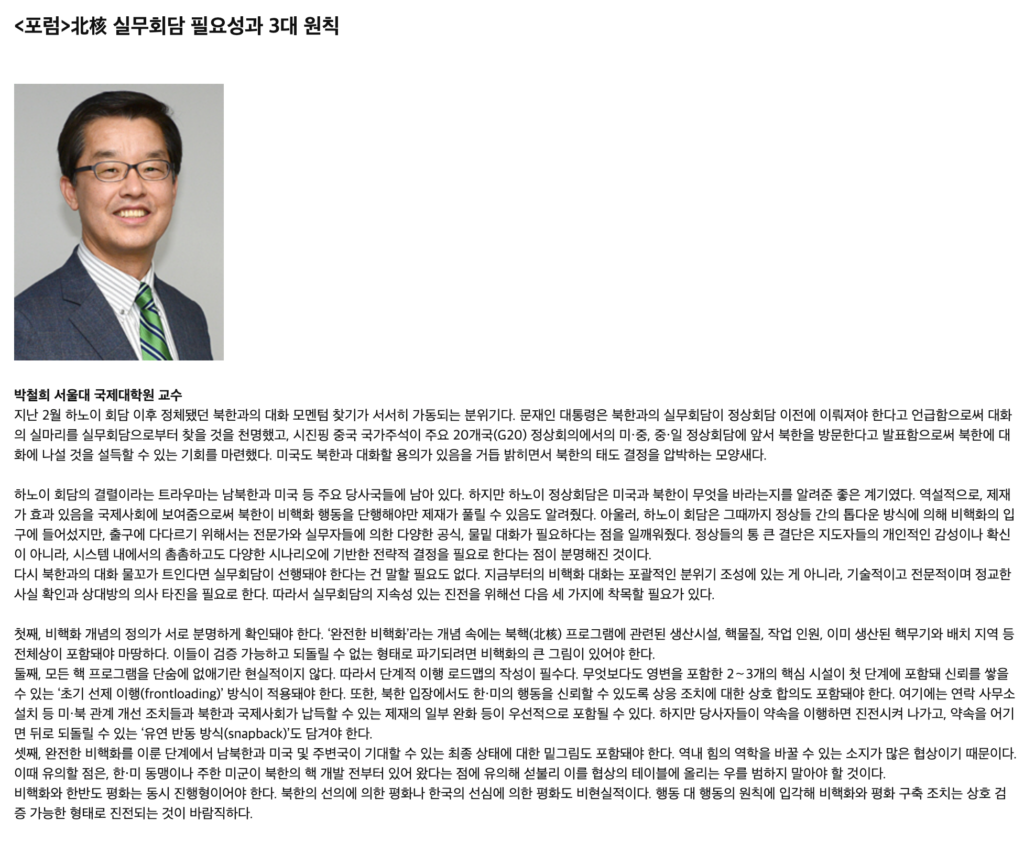 北核 실무회담 필요성과 3대 원칙 – 박철희 회원(서울대국제대학원 교수)
